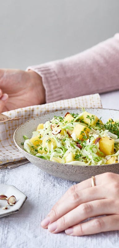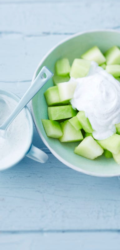 Gut, dass gerade besonders viele Obst- und Gemüsesorten Saison haben, denn sie haben einen hohen Wassergehalt und versorgen den Körper zusätzlich mit reichlich Flüssigkeit, wie z. B. Salatgurken, Tomaten, aber natürlich auch Wassermelone. Auch Kräuter bringen ein kühlendes und frisches Gefühl, wie z. B. die Minze. Sie ist nicht umsonst die beliebteste Zutat in Sommerdrinks wie Hugo, aber auch in Tee und natürlich in Salaten.
