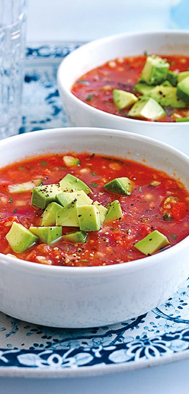 Rezeptklassiker im Sommer sind neben coolen Drinks, knackigen Salaten, kühlen Milchspeisen, auch Wraps oder kalte Suppen wie z. B. die Gazpacho.