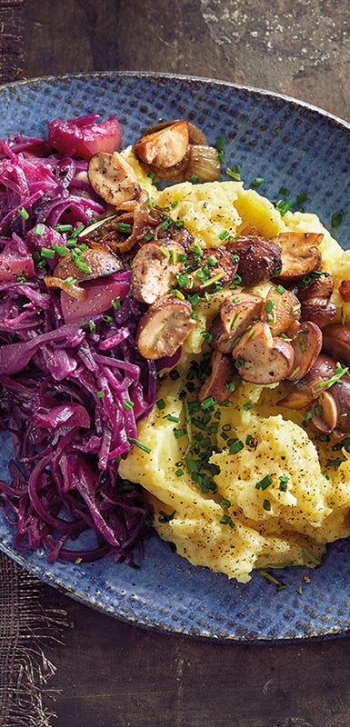 Rotkohl, Rotkraut, Blaukraut oder auch Blaukohl wird der rote Kohlkopf genannt, der ganz klassisch als Beilage zu Gans oder anderen deftigen Fleischgerichten serviert. Dabei kann Rotkohl so viele mehr, ob roh als Salat oder als Auflauf. Rotkohl ist ein typisches Wintergemüse, reich an Vitaminen, Mineralien und sekundären Pflanzenstoffen. So enthält Rotkohl mehr Vitamin C als Zitronen oder Orangen. Also los und die leckersten Rotkohlrezepte nachkochen.