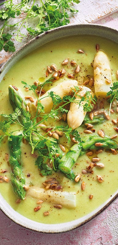Traditionell reicht die Spargelsaison in Deutschland von Ende April bis exakt zum 24. Juni, dem Johannistag. Also: ran an die Stangen und die kurze Spargelzeit so gut wie möglich auskosten! In unserem Rezept-Special findest du 9 super leckere neue Spargelrezepte.
