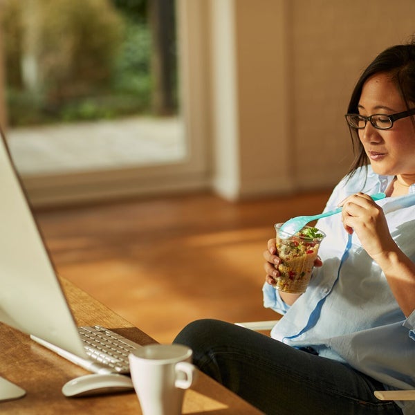 Ein gut ausgestatteter Arbeitsplatz bringt viel, ist aber nicht alles. Wer einen sitzenden Job hat, sollte trotzdem nicht dauerhaft auf dem Stuhl kleben. Eine tolle Orientierung bietet die 40:15:5-Regel. Heißt 40 Minuten im Sitzen arbeiten, 15 Minuten im Stehen und dann 5 Minuten bewegen. Also recken, strecken und eine Runde gehen. Wer es noch ein bisschen sportlicher mag, nimmt vielleicht Hanteln, schwingt den Hula-Hoop-Reifen oder geht aufs Mini-Trampolin.