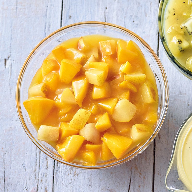 Gelbe Grütze mit warmer Vanillesauce