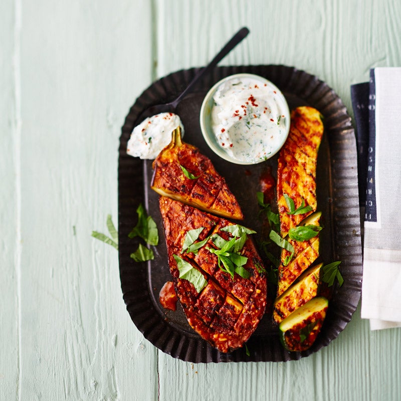 Lecker mariniertes Gemüse mit cremigem Ziegenkäsedip für alle Käseliebhaber.