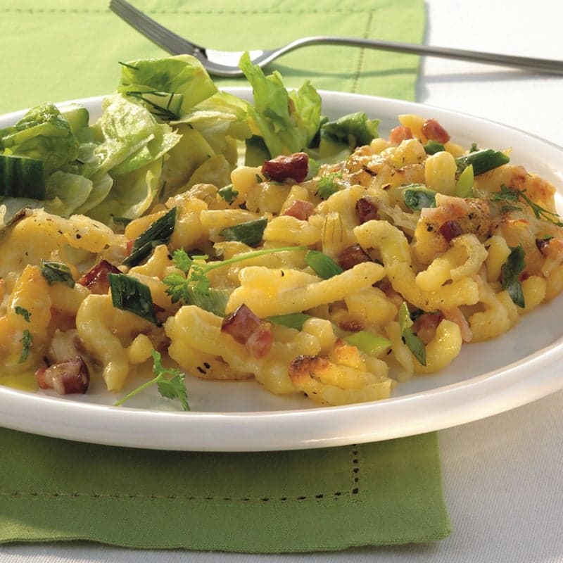 Käsespätzleauflauf mit Schinkenspeck