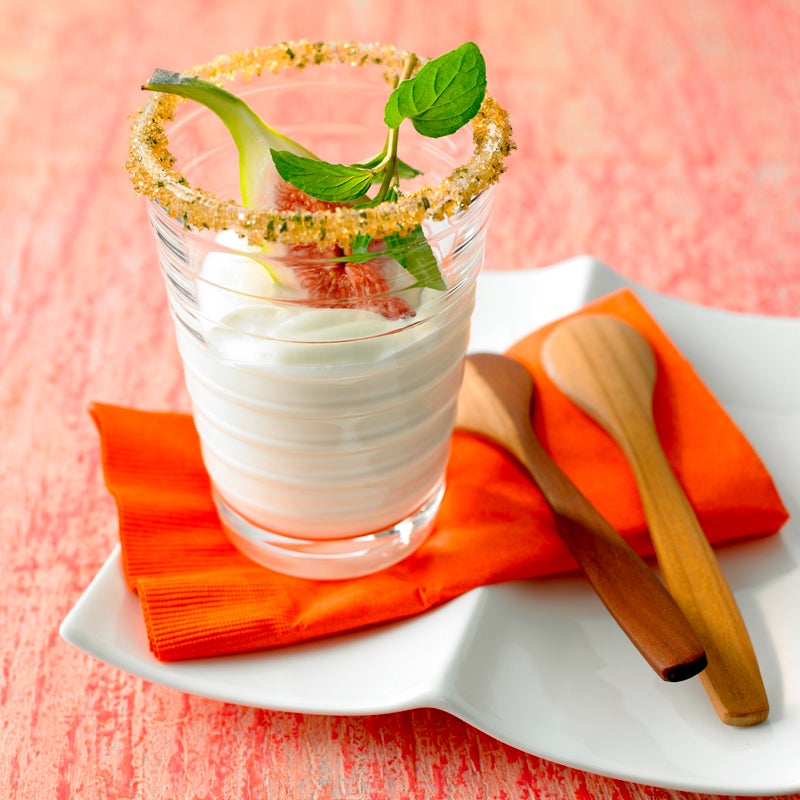 Limettenjoghurt mit Minzzucker und frischen Feigen