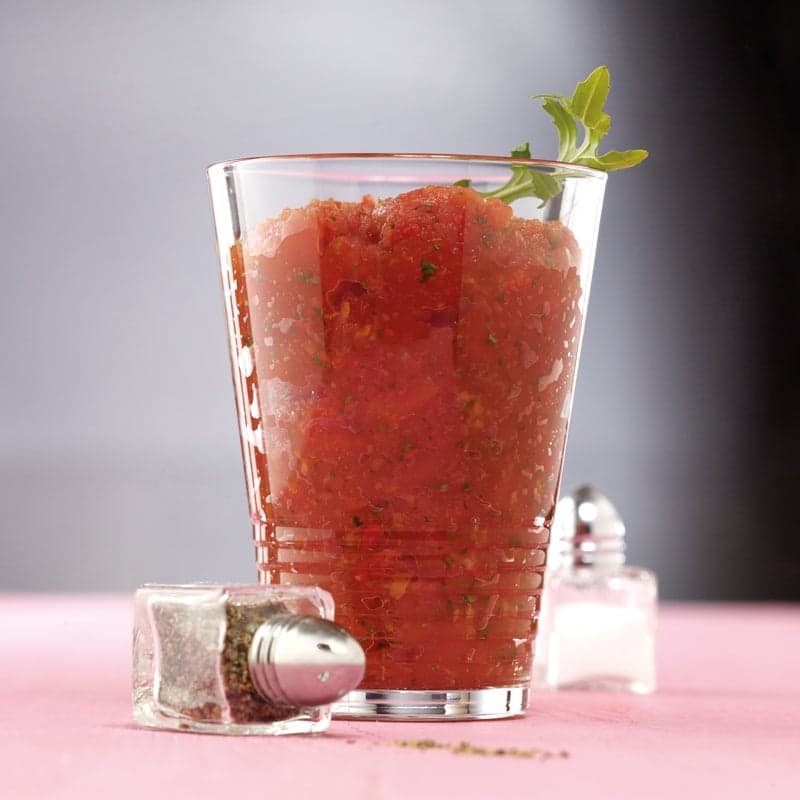 Im Sommer kannst du den Tomaten-Tabasco-Granita auch als leckere und erfrischende Vorspeise in kleinen Gläsern servieren.