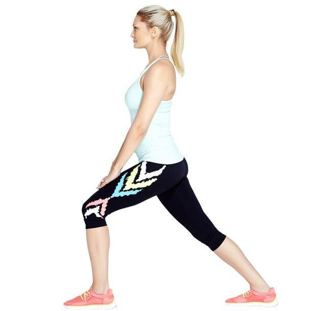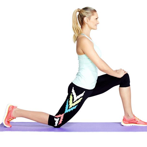 Comment faire ? Placez votre pied droit devant vous en faisant un grand pas en avant et positionnez votre genou gauche sur le sol. Posez vos mains sur votre cuisse avant pour repousser votre haut du corps vers le haut. Maintenez la position durant quelques profondes respirations avant de changer de côté.