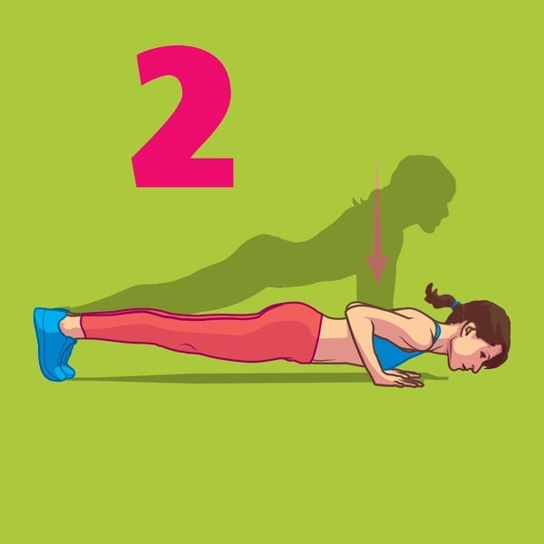 10 répétitions: au début il est important que votre corps soit bien plat et immobile (gainage). Vous devez sentir tout le poids dans tes bras. Les pieds touchent le sol et sont là pour vous stabiliser. Vous pouvez aussi soutenir votre corps avec les genoux. Inspirez, pliez les bras et descendez votre corps en direction du sol. Il doit presque toucher le sol. Expirez et dépliez les bras pour retrouver la position initiale.