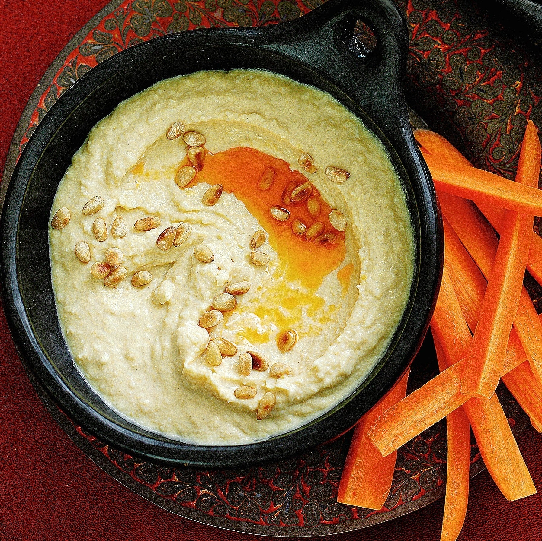 1. Le houmous aux pignons de pin et huile de piment rouge