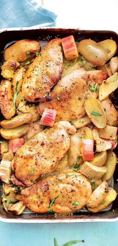 La rhubarbe, vous connaissez, mais que diriez-vous d’un zeste d'originalité ? Parce que nous avons plein de recettes délicieuses et surprenantes à vous faire découvrir. Entre avril et juillet, c’est l’occasion de profiter de sa texture juteuse et de son goût légèrement acidulé… ainsi que de sa couleur violette unique (car l’appétit passe aussi par les yeux !). La rhubarbe se cuisine aussi bien dans les plats sucrés que dans les plats salés. Dégustez-la au petit déjeuner, en la faisant cuire dans une pâte à pancakes chocolatée, par exemple. Ou pour un dessert fruité, dans des bouchées fondantes. Dans un plat principal, rôtissez-la avec du poulet ou glissez-la simplement dans un taboulé parfumé. Et n'hésitez pas à faire un petit stock car, contrairement à la plupart des fruits, vous pouvez la conserver au réfrigérateur pendant dix jours.