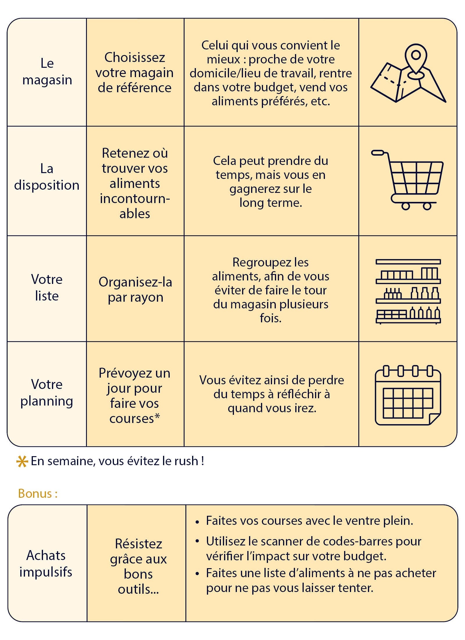 Faire les courses n'a pas besoin d'être une prise de tête ! Testez cette technique pour gagner du temps, éviter les achats compulsifs et simplifier vos choix sains tout au long de la semaine...