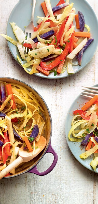 Les pommes de terre à chair de couleur : Bleue d’Auvergne, Vitelotte ou Roseval mettent vos assiettes en fête. Pensez à en faire des chips et notez qu'il n'y a pas besoin d'ajouter de matière grasse !