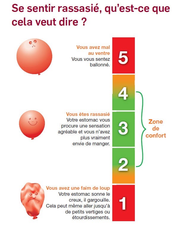Il est un thème qui revient souvent en Atelier c'est la sensation de satiété. En effet, il vous est conseillé de manger à satiété les aliments à zéro Points par exemple. Or, vous ne savez pas toujours à quoi ça correspond. Notre conseil le plus important pour vous aider est très simple : écoutez votre corps. C'est lui qui vous dira si vous avez encore faim ou si c'est juste de la gourmandise qui vous pousse à continuer de manger. Et si vous voyez que les chiffres continuent de descendre sur la balance, c'est problablement que vous mangez à votre faim. Voici quelques images qui pourraient vous être utiles pour mieux comprendre et appréhender cette notion de satiété.
