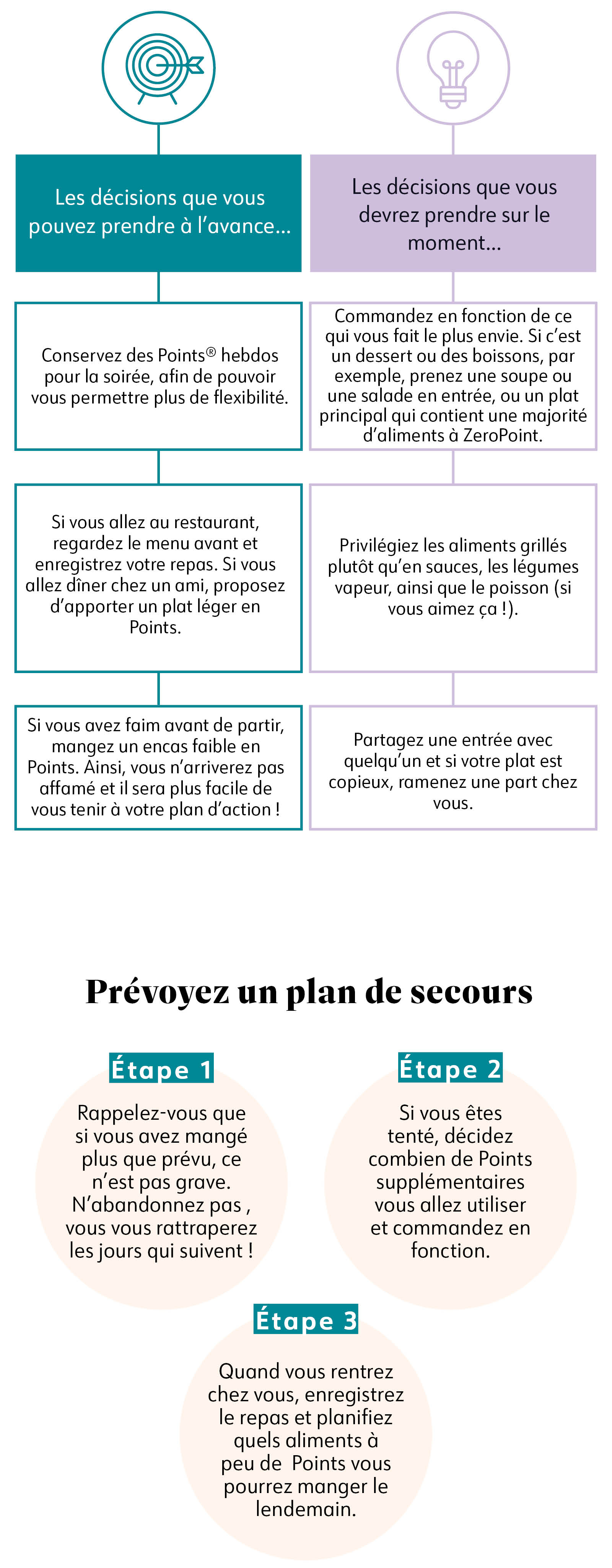 Il en est de même pour les repas à l’extérieur. Il peut s’agir de l’anniversaire d’un ami, de vacances, ou simplement d’un moment où vous n’avez pas envie de préparer à manger. Avoir un plan d’action pour ce type de situation qui vient chambouler votre routine vous aidera à poursuivre votre parcours.
