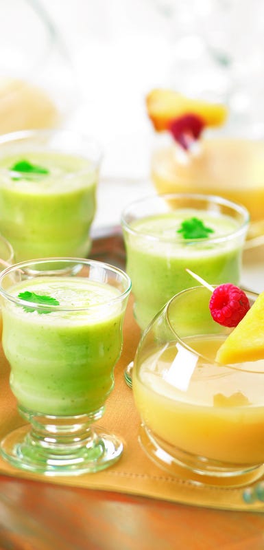 C’est le moment de sortir ce bon vieux shaker de vos placards ou de prendre votre plus grand verre pour préparer ces cocktails gorgés de soleil. Ananas, noix de coco, mangue, basilic, autant de saveurs qui se marieront à la perfection. Et si vous le souhaitez, vous avez également la possibilité de rajouter un soupçon de votre alcool préféré.* De quoi vous transporter directement en vacances.