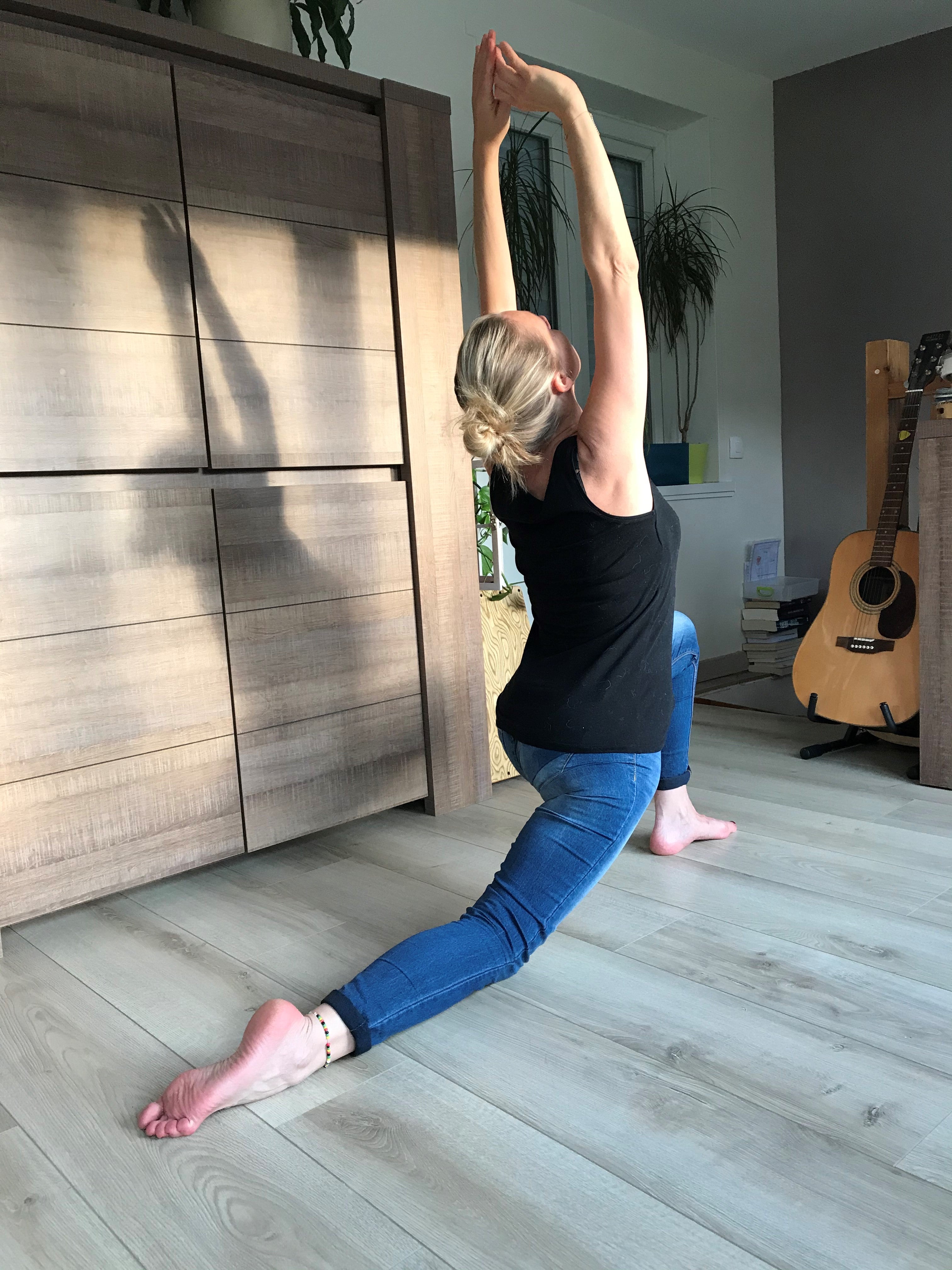 "J'ai adopté la salutation au soleil ! Simple, rapide, accessible, ... je le fais le matin, juste avant de m'installer à mon poste - ça me dénoue super bien. Si je peux, je le fais aussi dans le jardin. A chaque pause que je fais dans la journée, je m'étire, car l'ergonomie de mon poste de travail à domicile est nettement moins adaptée et confortable qu'au bureau."