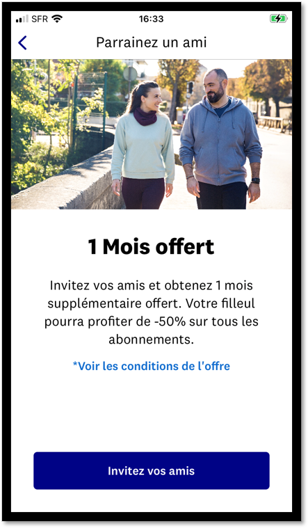 Avez-vous déjà entendu parler de notre programme de parrainage ? En tant que membre WeightWatchers, lorsque vous invitez un ami à nous rejoindre, vous lui faites gagner des avantages et vous en obtenez vous aussi ! Il n’y a pas de limite ! Invitez autant d’amis que vous le souhaitez grâce au lien en bas de la page Ma journée et cumulez les mois gratuits !