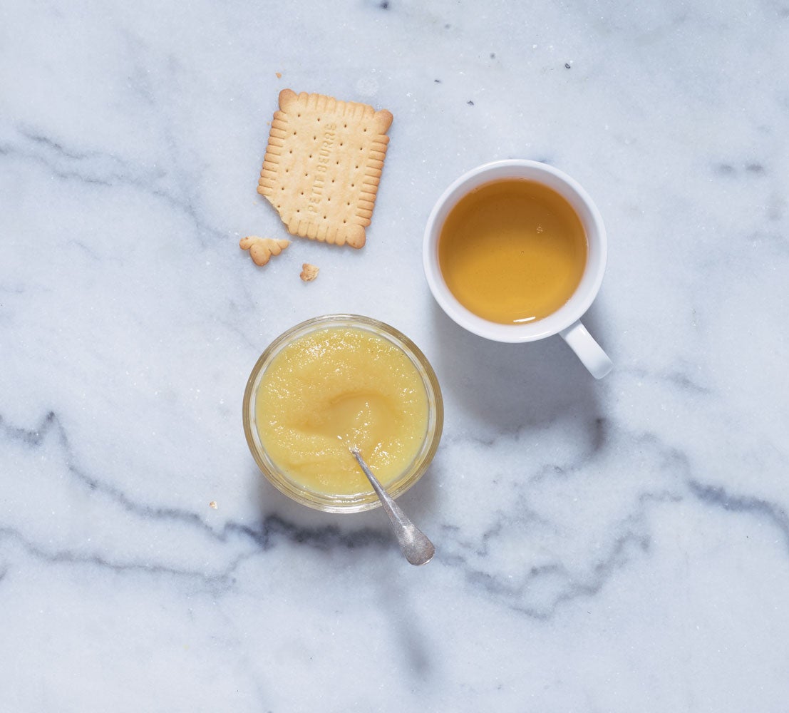 Dégustez une compote sans sucres ajoutés accompagnée d'un biscuit petit beurre.
