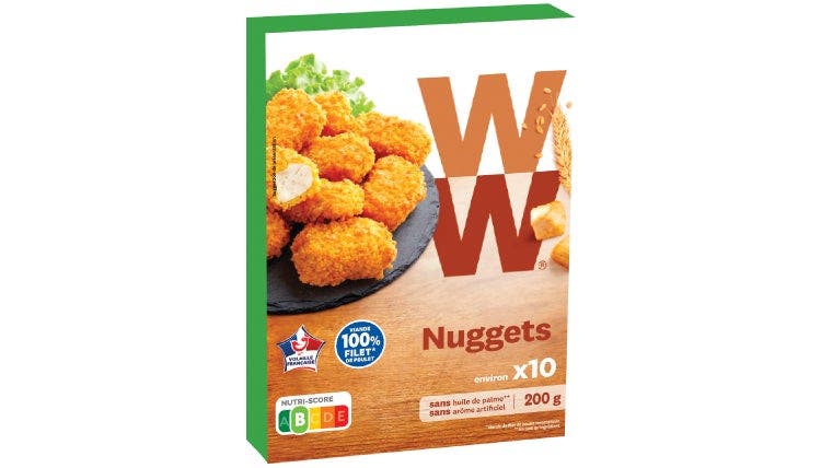 Ingrédients : Viande de filet de poulet traitée en salaison : 70 % (viande de filet de poulet origine France : 54 %, eau, protéine de blé, fibre de blé, sel, arômes naturels), panure : 30 % (eau, farine de blé, levure, sel, épices). Huile detournesol.