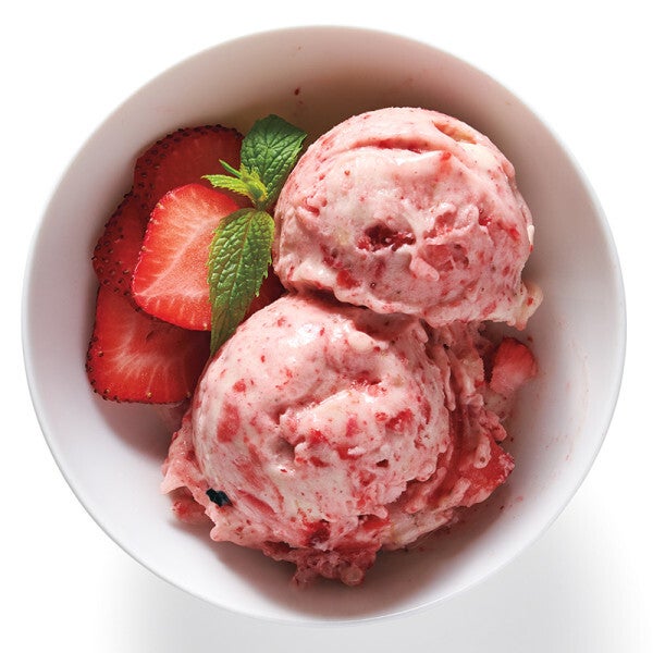 Utilisez de la purée de banane comme base de votre glace et remplacez les fraises par vos fruits préférés version surgelée.