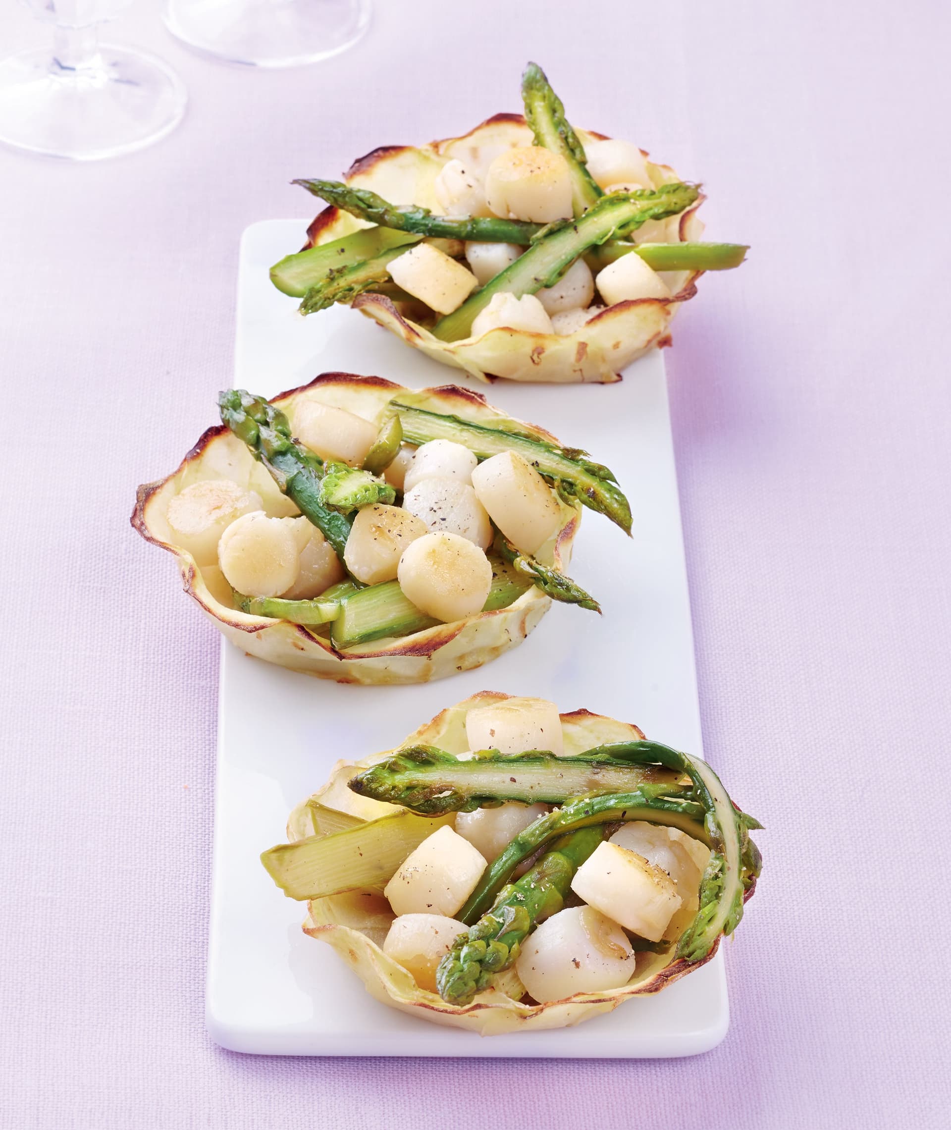 Tartelettes aux asperges vertes et aux noix de pétoncle