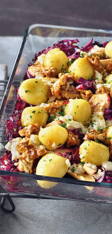 Een heerlijke veelzijdige seizoensgroente is rode kool. Rode kool kun je op veel verschillende manieren eten, zowel warm uit de oven of lauwwarm in een salade. Probeer onderstaande recepten eens ter variatie!