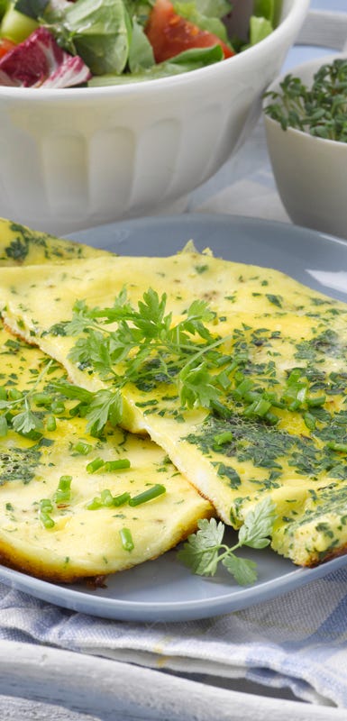 In de meeste recepten kun je één compleet ei vervangen door twee eiwitten: dit is een magere variant die de smaak behoudt. In klassieke eiergerechten zoals omeletten en quiches geef je met kruiden zoals paprikapoeder extra kleur aan het geheel.