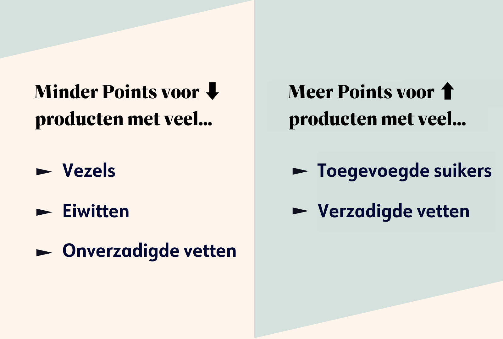 We berekenen de Points waarde van ieder voedingsmiddel aan de hand van calorieën en 5 andere voedingswaarden die van belang zijn voor je gezondheid.