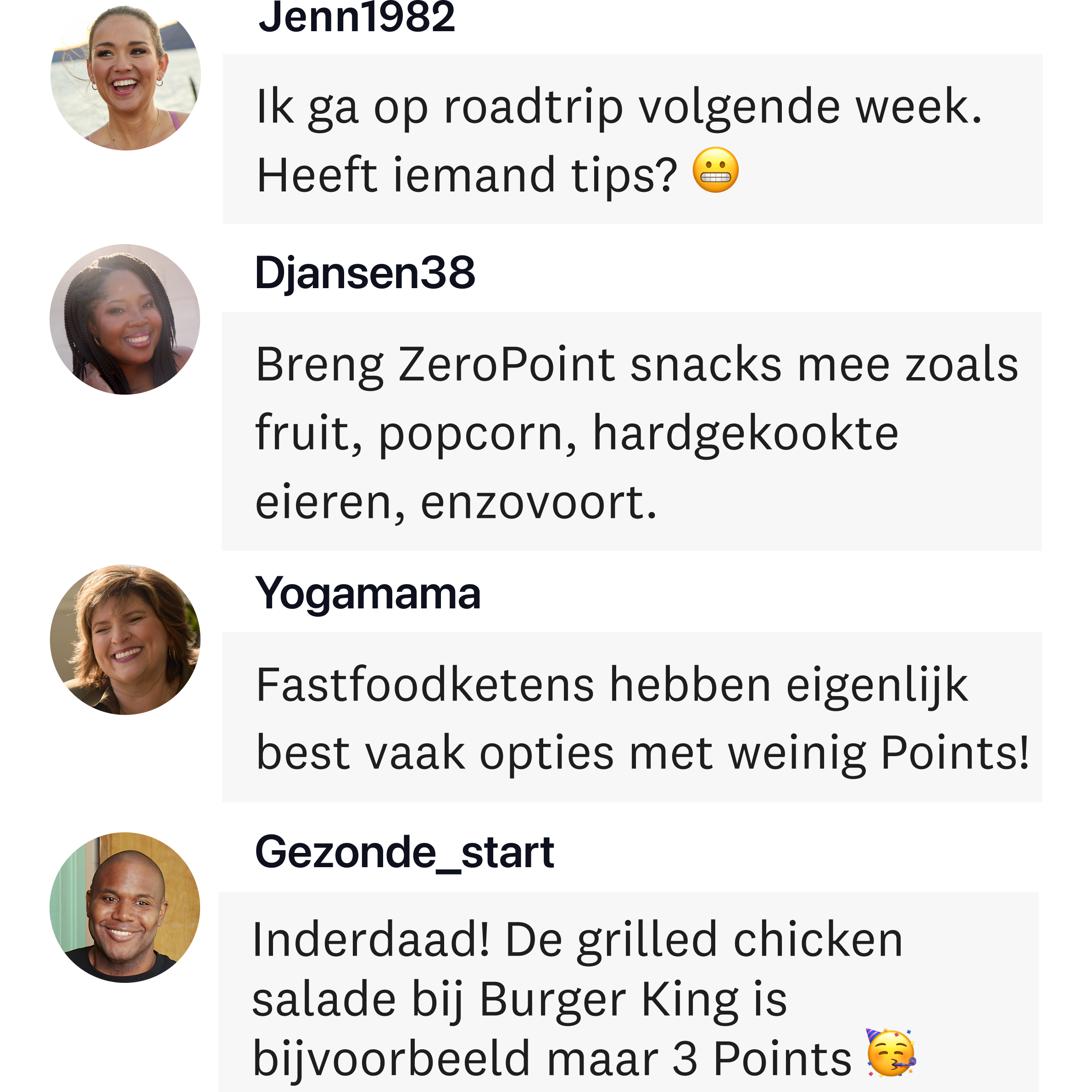 Connect is een plek exclusief voor members waar niemand je veroordeelt, waar je je favoriete tips voor Points kan delen, waar je recepten vindt die bij je Budget passen, waar je hulp krijgt bij je uitdagingen en waar je samen overwinningen kan vieren.