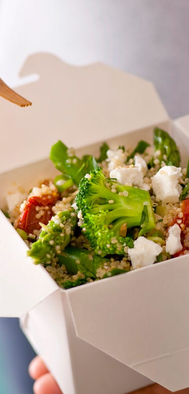 For a really simple side dish, drizzle ½ cup cooked quinoa with ½ teaspoon each of lemon juice and olive oil. Season with salt and pepper.