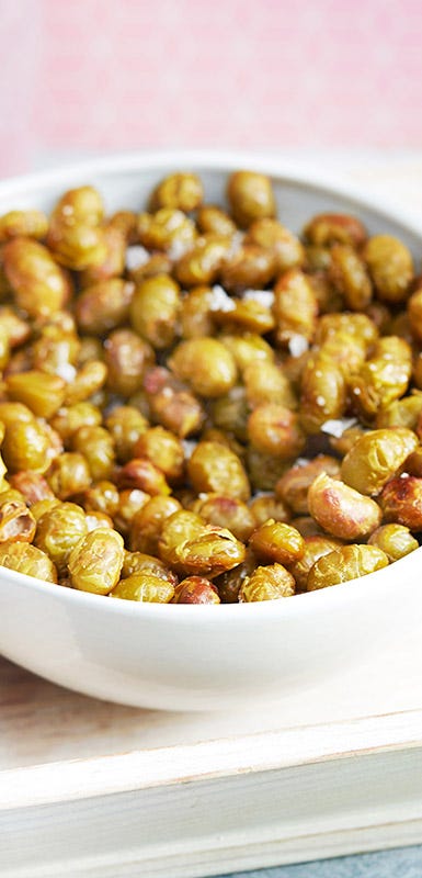 - Edamame-hummus dip: Add cooked edamame to homemade or store-bought hummus, giving the dip a quick blitz in the food processor or blender before serving. Top the beautifully green dip with a drizzle of olive oil and plenty of chopped fresh herbs.