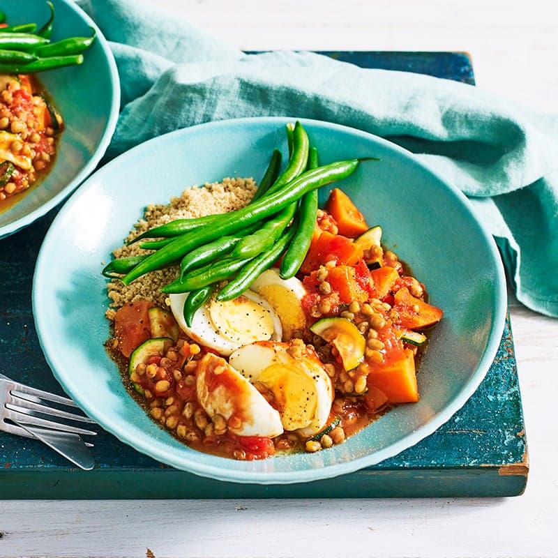 Egg, lentil and sweet potato tagine