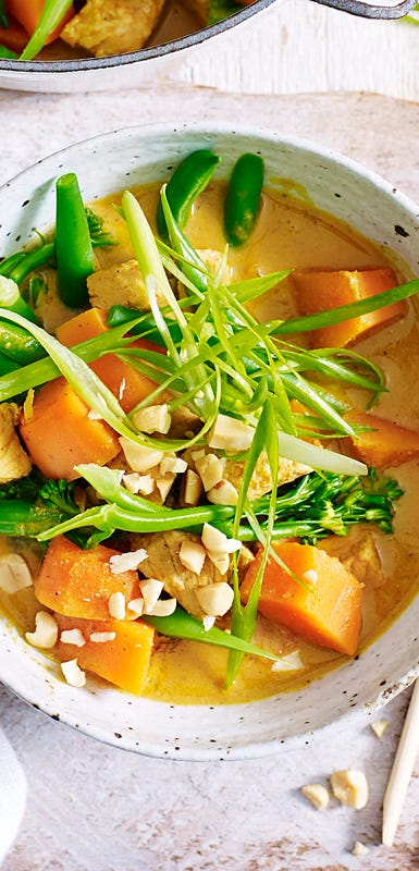 If there’s an easy way to warm up this winter it’s definitely with massaman pork and sweet potato curry. With all those classic spices of the much loved Massaman curry and veggies topped with crunchy peanuts, it’s hearty and delicious for either lunch or dinner.