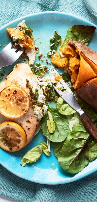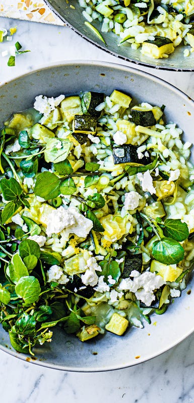 A zesty sheep's-milk cheese, feta is made all over the world but is considered a Greek cheese. Depending on where it's made (wonderful versions also come from France and Bulgaria), feta might be sour or tangy, creamy or crumbly. Compared to other cheeses, it's relatively low-fat, and each 30g serving is a good source of protein. Buy feta packed in brine—it dries out quickly when exposed to air—and if you find it too salty, soak it briefly in plain water. Feta is fantastic crumbled into salads, cooked vegetables, grains, omelettes, and casseroles and in traditional Greek dishes, like spanakopita (spinach pie).