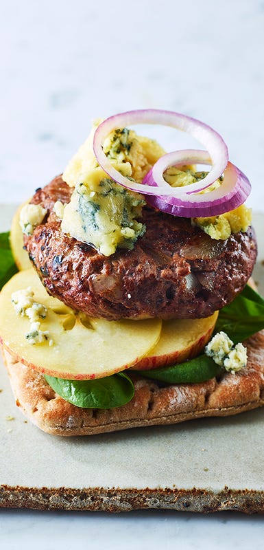 Nearly every cheese-producing country has its own famed variety of this pungent specimen: Roquefort (France), Cabrales (Spain), Gorgonzola (Italy), Stilton (England), Maytag (United States). They all share bluish-green moldy veining and an assertive, salty flavour, but each has its own distinct bite, depending on which animal's milk is used: cow, sheep, or goat. Try blue cheese in salads and omelettes, or melt it onto a burger. Like many other varieties of cheese, 30g of blue cheese is a good source of protein and calcium.