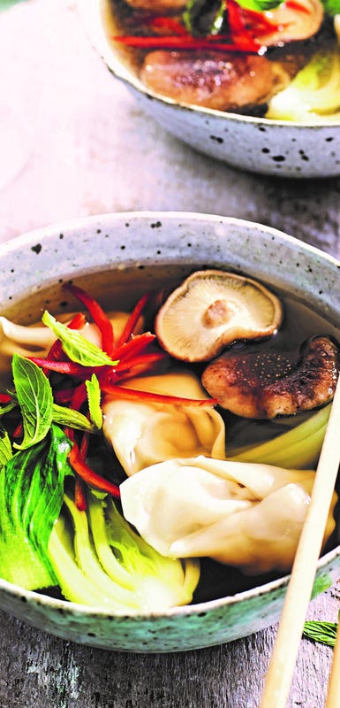 In the mood for a starter? Watch out for words such as 'battered' or 'crispy' as these mean deep-fried. Save Points by skipping the prawn crackers and spring rolls. Instead, consider broth-based soups— such as wonton, egg drop or sweet and sour soups. When you're in the mood for dumplings, reach for steamed or pan-fried veggie, prawn, beef, pork, or chicken ones.