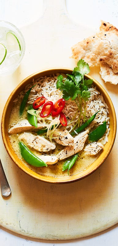 Some of the healthiest dishes of Thai cuisine are soups and salads. They’re also the perfect meal starter. A broth-based soup with veggies or seafood will help to fill you up without spending a lot of Points. Sharing apps with the table? “Opt for chicken satay or spring rolls which will give you a little protein to get started.