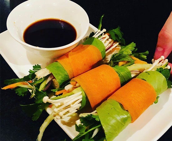 Starters on the Pho menu are all about dipping, rolling and sharing. Try a classic, veggie CHẢ GIÒ (crispy spring rolls served with lettuce & herbs to wrap & dip) for 11 Points® (P).