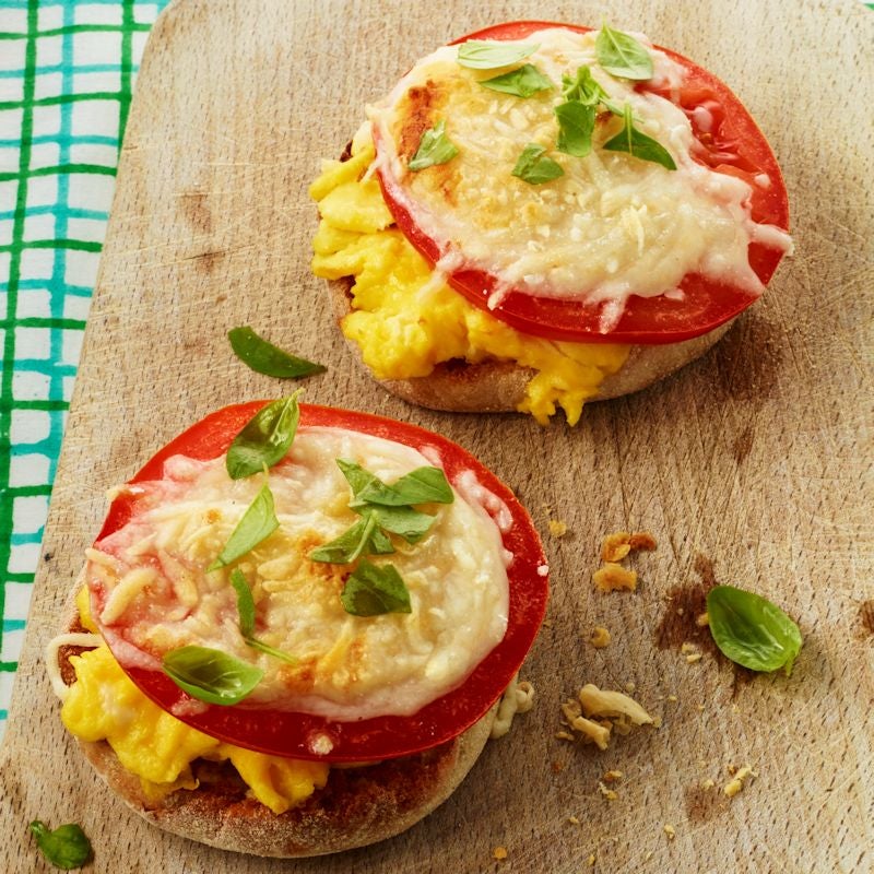 Scrambled 1 egg over a medium heat. Once cooked top each half of English muffin with egg.