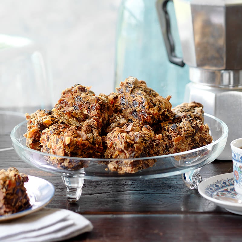 Combine the dried fruit and coffee in a large heatproof bowl, then cover and set aside to soak overnight.