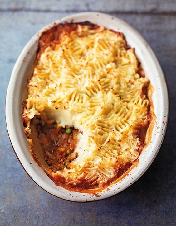 A hearty, complete meal that breaks with the classic cottage pie with the addition of spices in the mince base and parsnips in the mash – it tastes great.