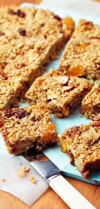 These flapjack-style cakes are delicious served warm, or cold as a tea time or lunchbox treat.