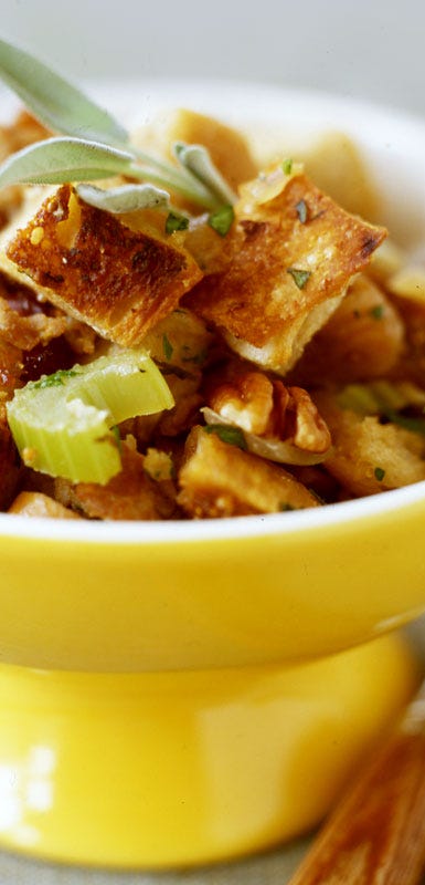 Full of tasty ingredients like turkey sausage, dried fruit and nuts. Plus, lots of fresh herbs and butter-sautéed vegetables.