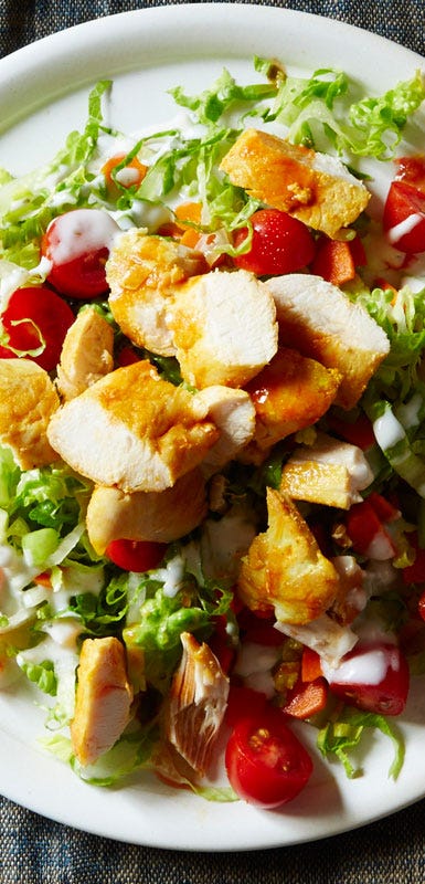 People who embrace a salad-a-day habit are more likely to meet their need for important vitamins, including immunity-boosting C and E, according to research in the Journal of the American Dietetic Association. To get the best healthy boost, stick with crunchy toppers like celery, peppers, carrots, and cukes. Skip croutons, noodles, and tortilla strips.