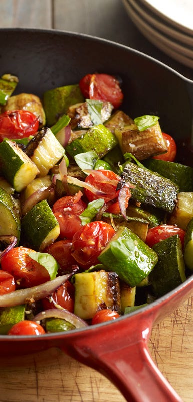 At their peak from June through September, tomatoes are as versatile as they are waistline-friendly. They’re a good source of potassium and high in vitamins C and A. Cooked tomatoes also provide lycopene, an antioxidant thought to reduce the risk of cancer, cardiovascular disease and macular degeneration. In fact, the tomato is the biggest source of lycopene in the American diet. And tomato lycopene absorption is maximized when tomatoes are cooked with little oil — think chili and spaghetti sauce.