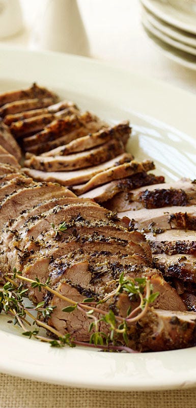Start with this seriously-impressive salad, then serve the pork and veggies together on a platter.
