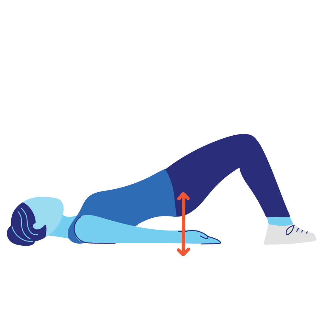How to do it:Lie on your back with your knees bent and feet flat on the floor, hips-width apart. Squeeze your butt to lift your hips toward the ceiling until your body forms a straight line between your knees and shoulders. Then return to your starting position with control to complete one rep.Do two to three sets of five to eight reps.