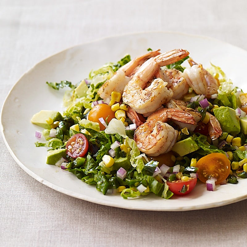 Shrimp, corn and avocado salad with cumin-lime dressing