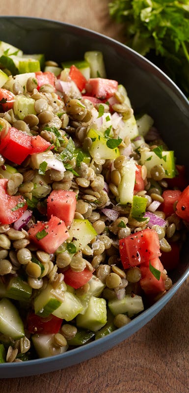 Did you know that lentils are a vegetable? They're part of the class of vegetables known as legumes. Like other beans in their class, lentils have no cholesterol and are low in fat. But where they differ is that they are quick and easy to prepare. (Score!) This makes them the perfect centerpiece of a meal!