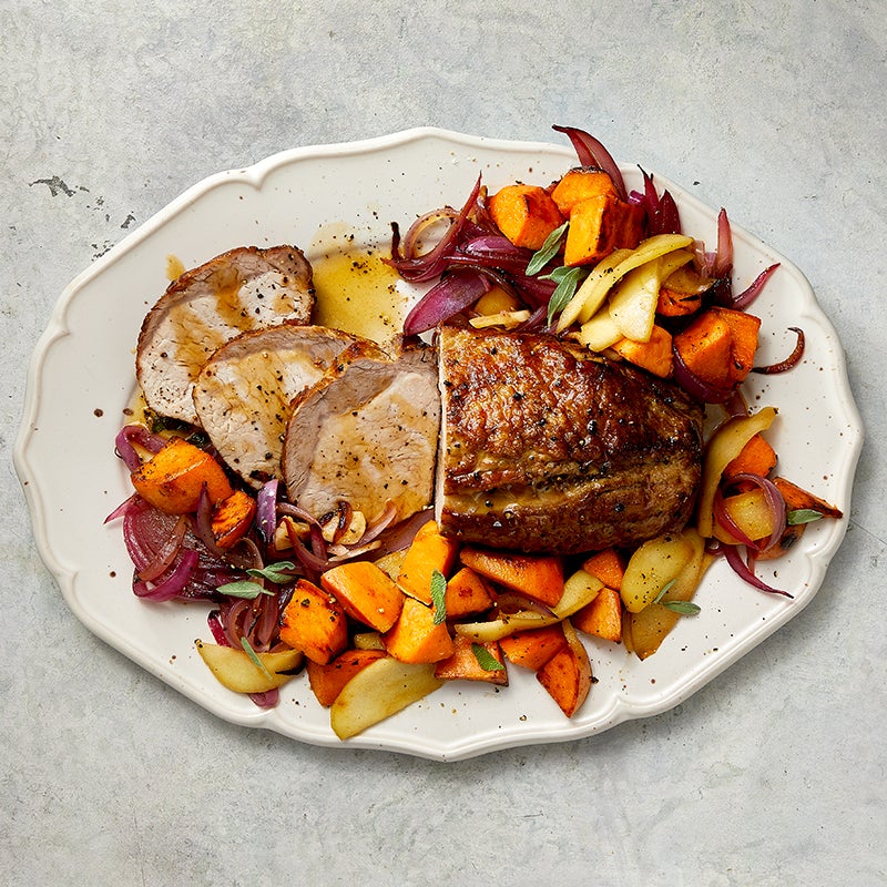 Cider-Glazed Roast Pork with Apples, Sweet Potato & Sage